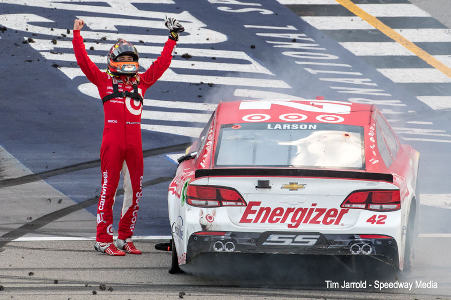Lap Leaders: B. Keselowski 1-42; E. Jones # 43-46; B. Keselowski 47-63; D. Suarez # 64-66; B. Keselowski 67-110; Kyle Busch 111-113; M. Truex Jr. 114-127; B. Keselowski 128; M. Truex Jr. 129-159; E. Jones # 160; B. Keselowski 161; D. Hamlin 162-177; Kyle Busch 178-188; M. Truex Jr. 189-200; K. Larson 201-202.