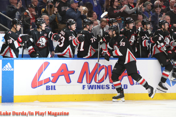 JJ Peterka scored the seventh goal for the Sabres, intercepting a pass attempt in the neutral zone and shooting to the far corner from the left circle.