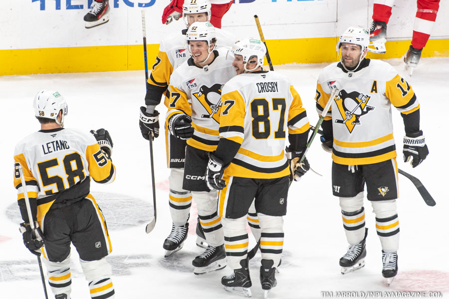 Sidney Crosby was exceptional, recording two assists and extending his point streak to six games (10 points; 4 goals, 6 assists). Crosby now has 53 points in 40 regular-season games against Detroit and recorded his 257th multi-assist game, passing Marcel Dionne for sole possession of that record.