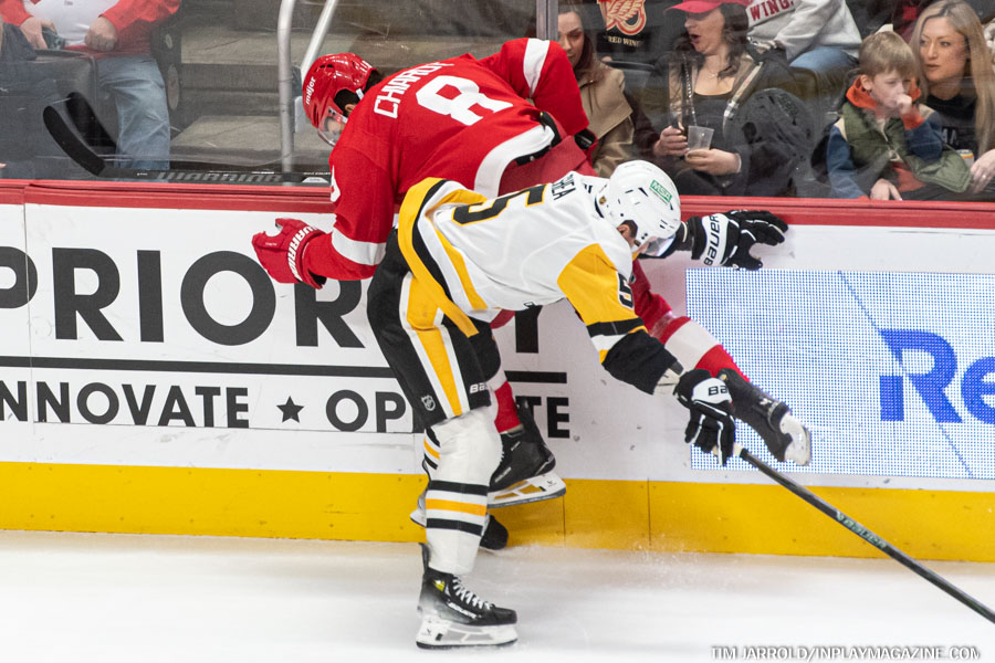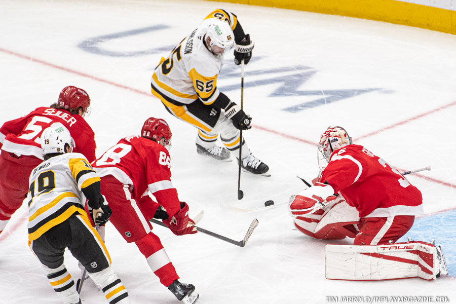The Red Wings showed signs of life in the second period when Alex DeBrincat cut the deficit to 2-1 at 15:06. DeBrincat beat the Penguins to a loose puck, broke down the left wing, and fired a shot over Stuart Skinner’s glove from the face-off circle.