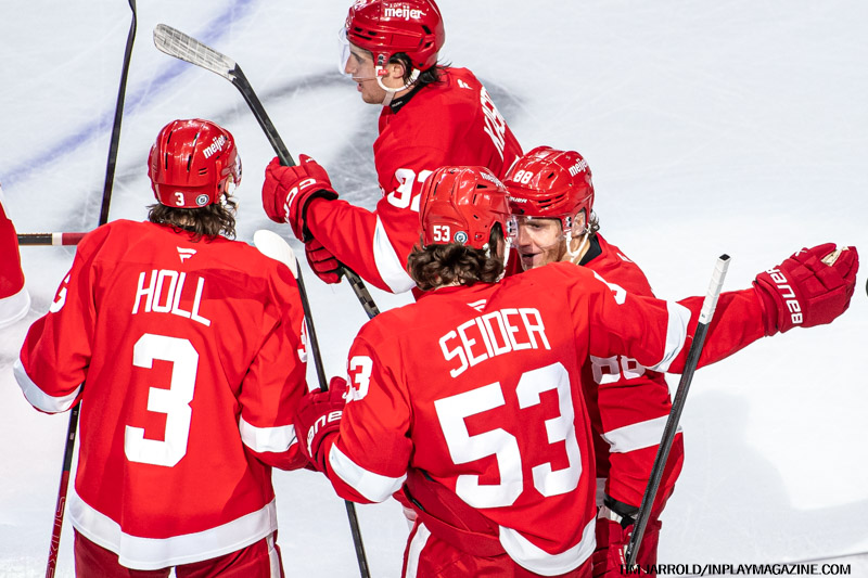 The Red Wings came out of the gates with guns blazing, scoring three goals in the first 5:06 of the game – the fastest any team has scored three goals this season. Here’s how the action unfolded in the opening period: