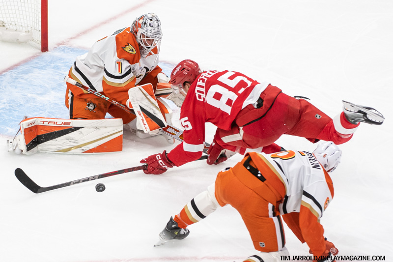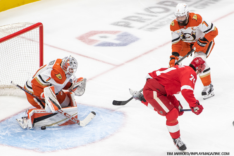 The Ducks outshot the Red Wings 8-0 in the third period, forcing overtime.