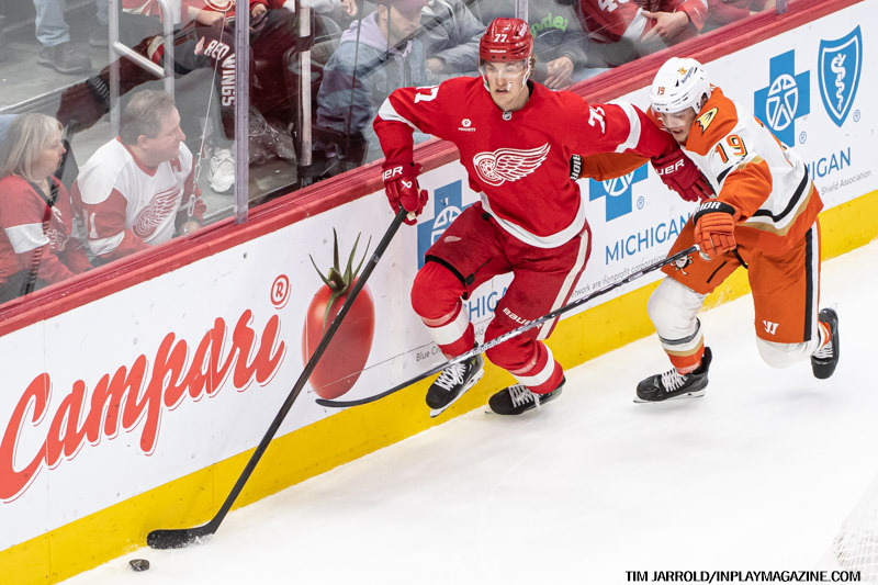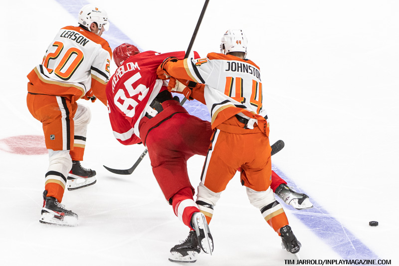 The Ducks outshot the Red Wings 8-0 in the third period, forcing overtime.