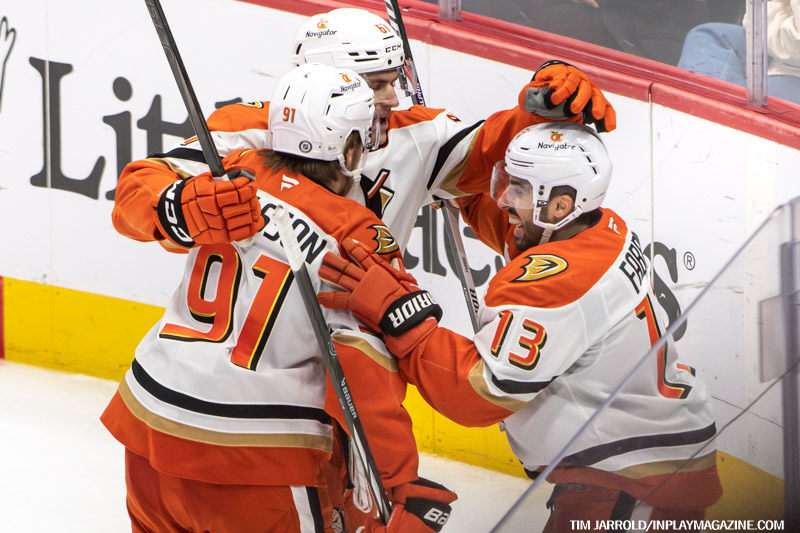 - 8:24 – Ryan Strome (8) got the Ducks on the board, assisted by Troy Terry (25) and Frank Vatrano (15).