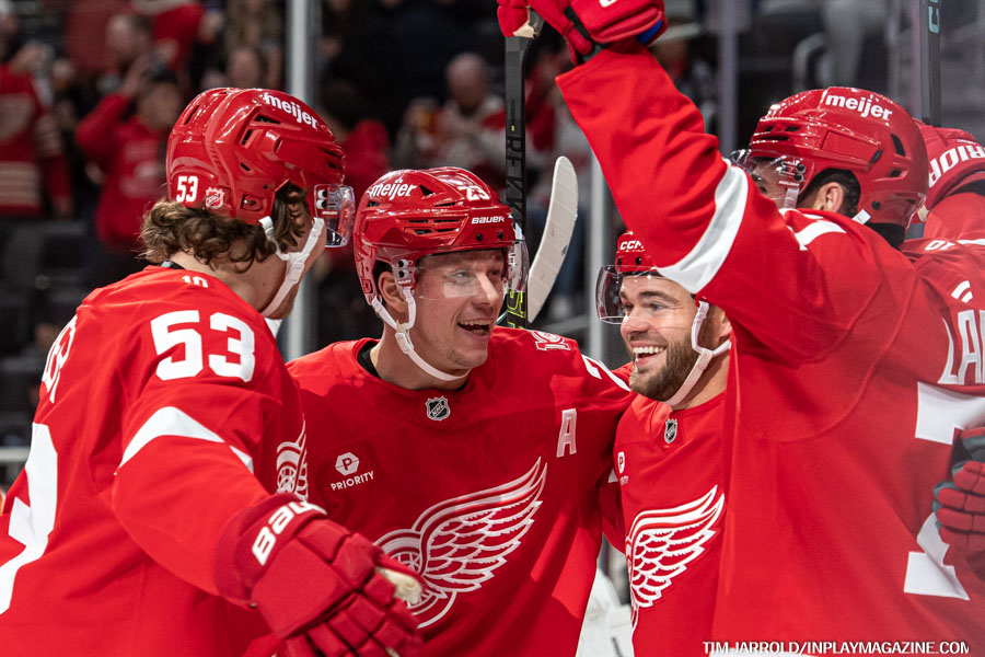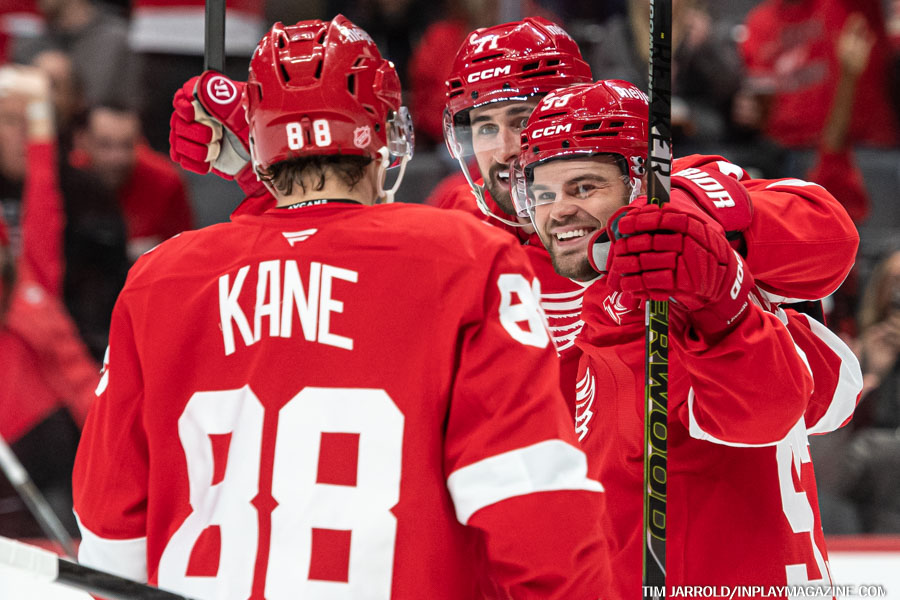 Several Red Wings registered multi-point nights, with Dylan Larkin (1G, 1A), Jonatan Berggren (2A), Patrick Kane (2A), and Lucas Raymond (2A) all making significant contributions to the offensive output.