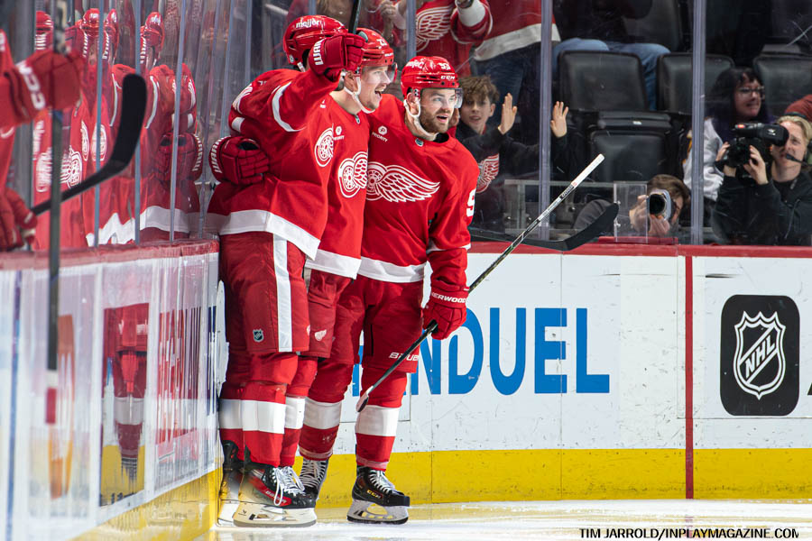 • 0:53 – Lucas Raymond (26) (Power Play) – Assists: Patrick Kane, Moritz Seider – DET 2, BOS 0