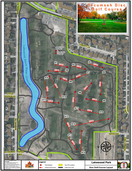 Tecumseh’s Disc Golf Course, located in Lakewood Park at 13451 Riverside Drive, celebrates its grand opening this Saturday, May 27, 2017. Members of Council and the local Windsor-Essex Disc Golf Association will throw out the “first disc.” The event will be held at the first hole at 11:00 a.m. Members public are invited to attend.