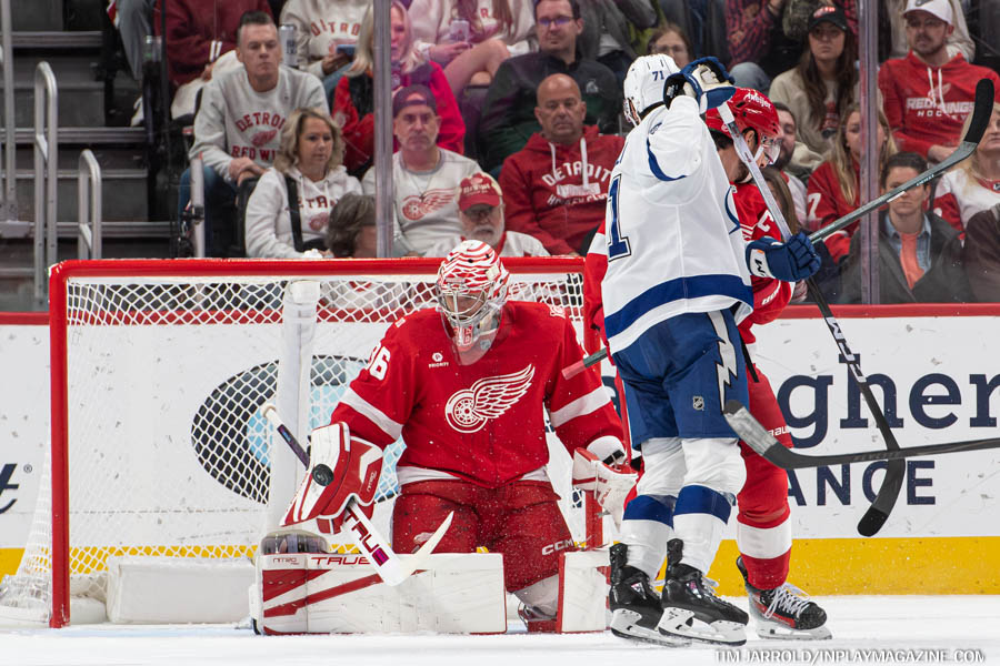The Red Wings’ defensive structure was on full display early, holding Tampa Bay without a shot on goal for the first 12:42 of the game. Even when the Lightning went on the power play midway through the period, Detroit’s penalty kill remained perfect.