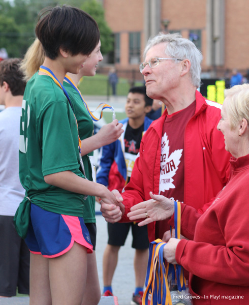 Saturday at the University of Windsor’s track and field complex, Loaring’s son John was pleased to present medals to the elementary school athletes who competed in the relay race. Several members of the Loaring family attended as did famed Lancers’ coach Dennis Fairall.