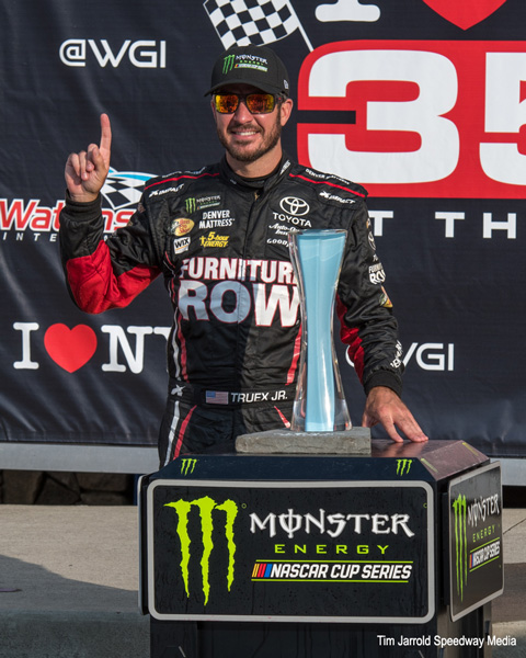 Truex expanded his series lead to 116 points over Kyle Busch, who moved past 23rd-place finisher Kyle Larson for second place. … Truex also increased his playoff point total to 34. Three-time winner Jimmie Johnson is second with 16. … Busch collected his ninth stage win to raise his playoff point total to 14. … The three winless drivers currently in playoff-eligible positions (Chase Elliott, Jamie McMurray and Kenseth) are seventh, eighth and ninth in the standings, respectively, all within an 11-point range. Photos by Tim Jarrold – Speedway Media