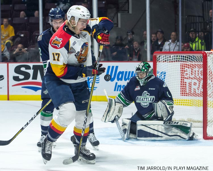 Troy Timpano made 18 saves as the Erie Otters defeated the Seattle Thunderbirds 4-2 in the Memorial Cup Game 2 of the 2017 MasterCard Memorial Cup at the WFCU Centre in Windsor Saturday afternoon. Alex DeBrincat, Jordan Sambrook, Dylan Strome and Christian Girhiny all scored for the Ontario Hockey League champion Otters (1-0) who never trailed in the game. Read John Humphrey’s full game recap here.