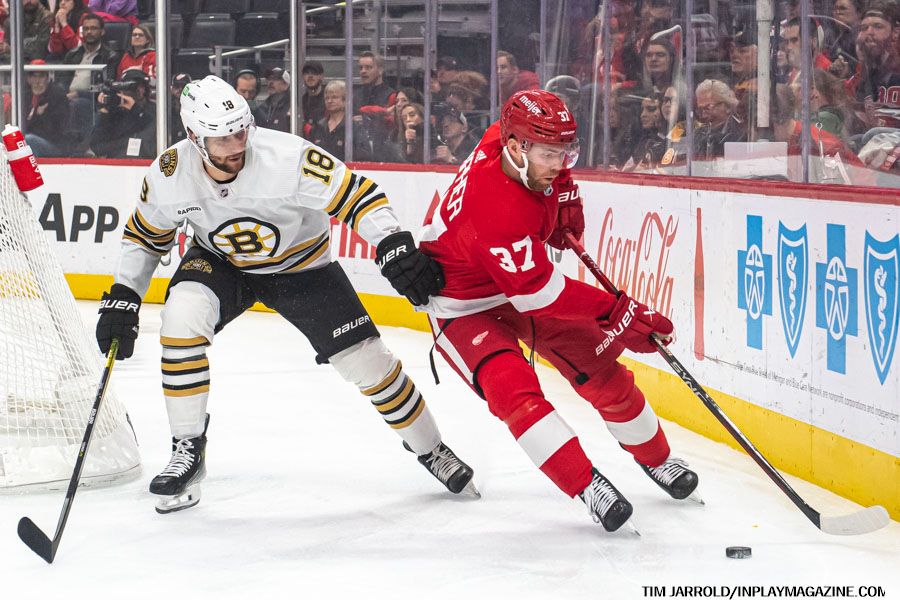 Charlie Coyle put the Bruins back in the lead, 3-2, before the end of the second period. However, Detroit’s determination shone through in the third period.