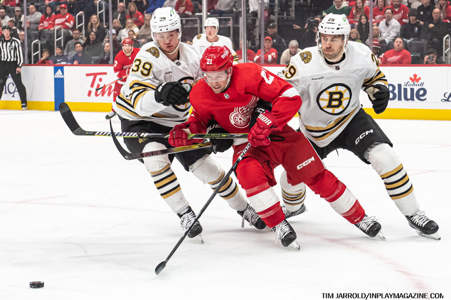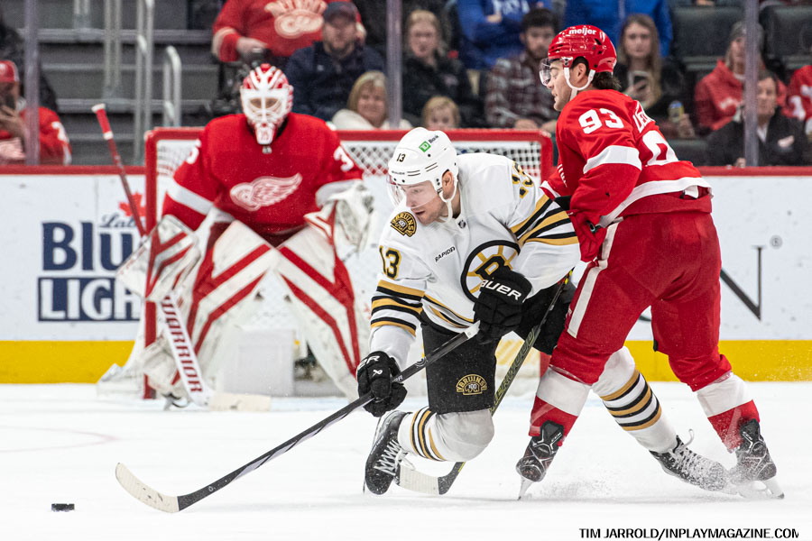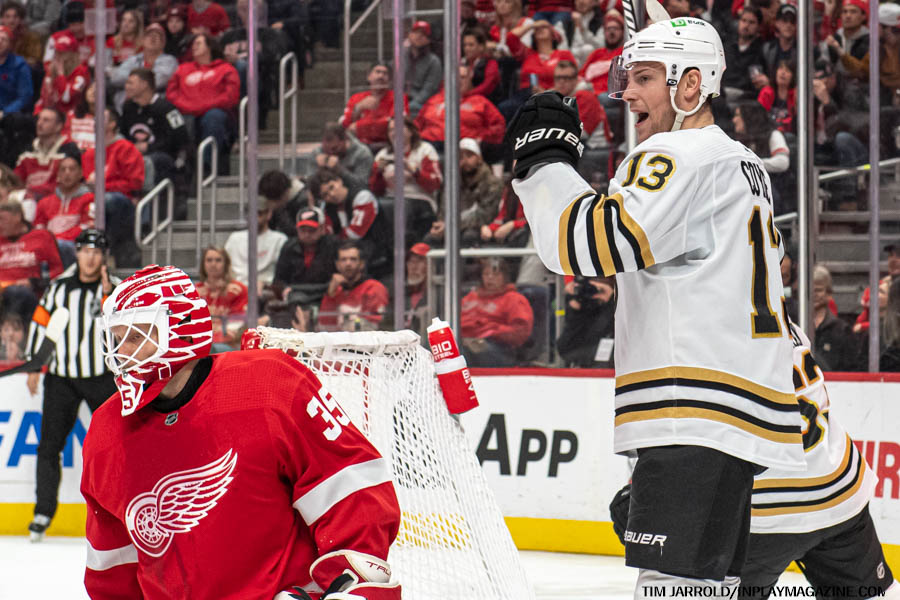 Charlie Coyle put the Bruins back in the lead, 3-2, before the end of the second period. However, Detroit’s determination shone through in the third period.