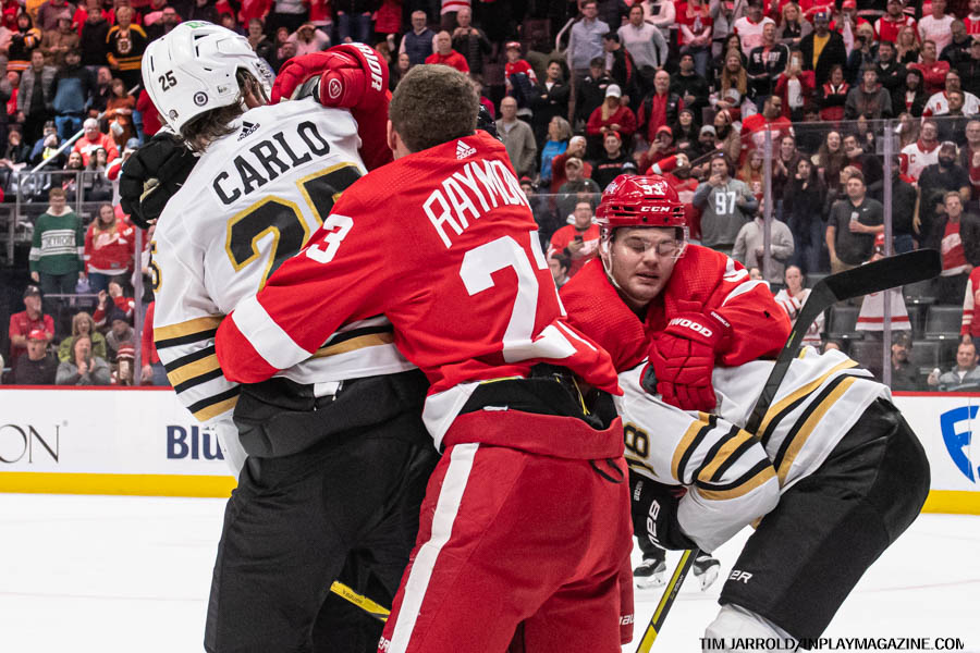 Charlie Coyle put the Bruins back in the lead, 3-2, before the end of the second period. However, Detroit’s determination shone through in the third period.