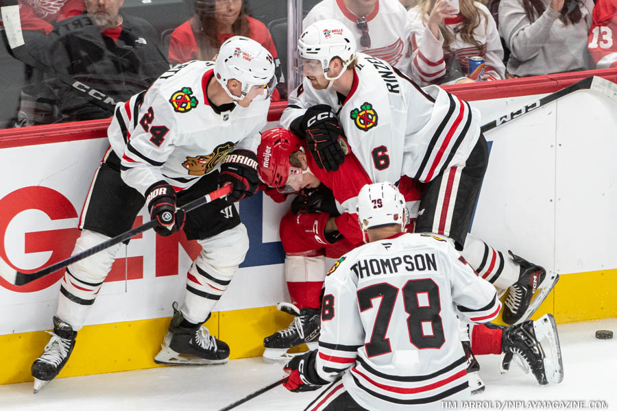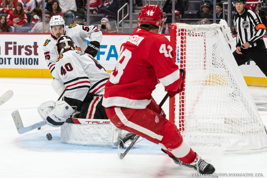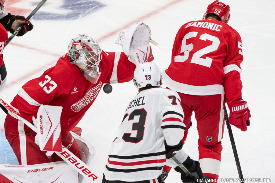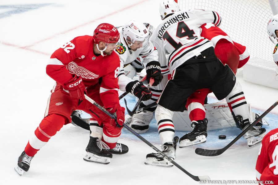 From this point on, Detroit took complete control of the game, outshooting Chicago 17-5 in the second period alone. The Red Wings’ relentless forecheck and puck-hounding style left the young Blackhawks squad struggling to exit their defensive zone for much of the period.