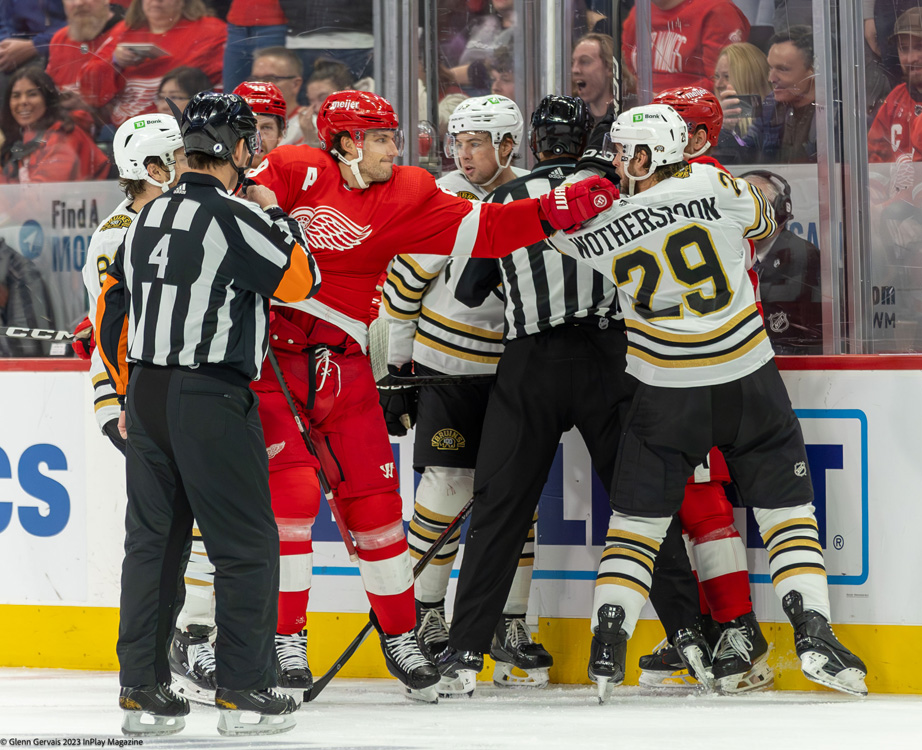 However, the Bruins took control of the third period. Charlie Coyle took advantage of a missed face-off assignment by the Red Wings, shooting a one-timer past Lyon from the slot off a pass by McAvoy. Jake DeBrusk later extended their lead to 4-2 with an empty-net goal, before Compher’s power-play goal reduced the deficit to 4-3.