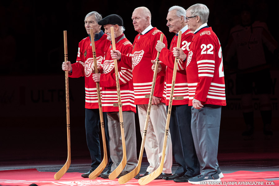 Prior to puck drop, fans were treated to a special ceremony honoring former Red Wings captains Nick Libett, Dennis Hextall, Red Berenson, Paul Woods, and Mickey Redmond as part of the organization’s centennial celebration.