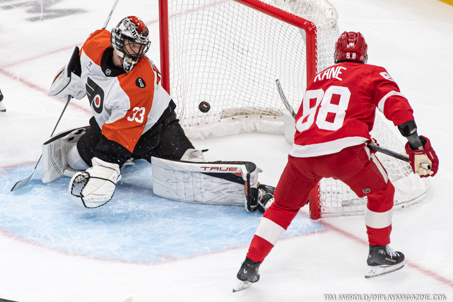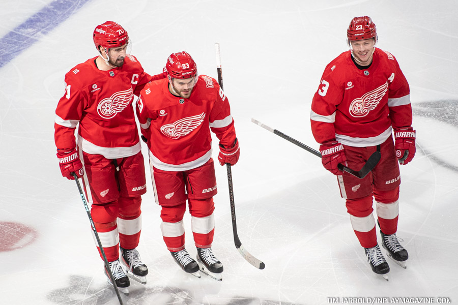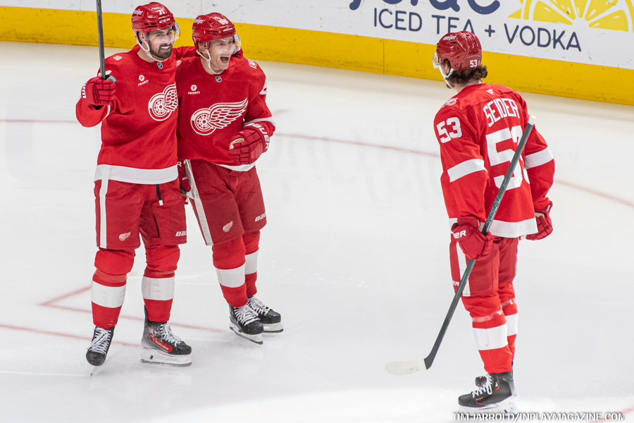 Alex DeBrincat opened the scoring with a beautiful power-play goal in the first period. His 40th goal of the season made history as the first Red Wing to reach that milestone since Marian Hossa in 2008-09. Luke Glendening added an insurance goal late in the third period against his former team.