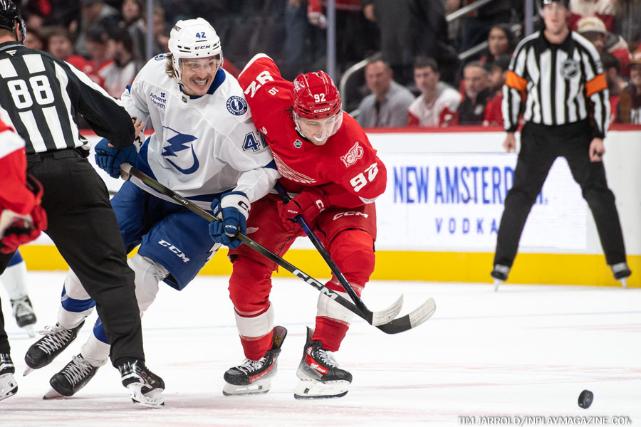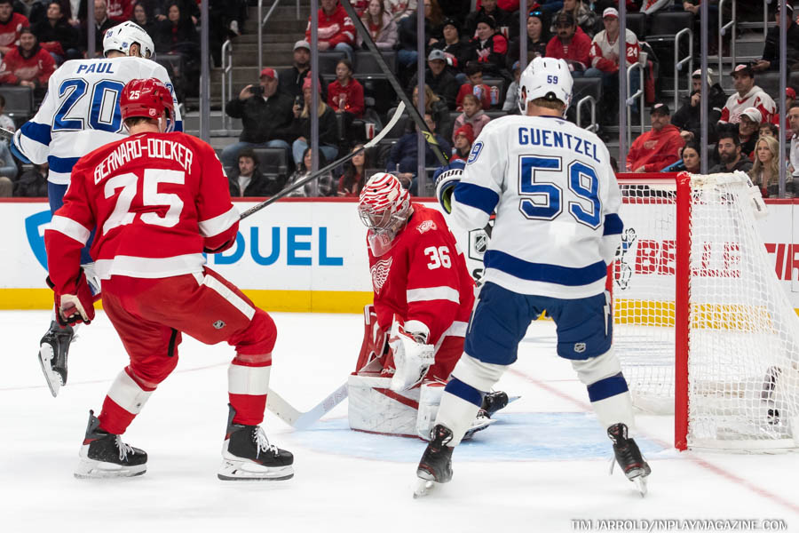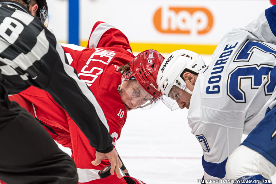 Gourde struck again at 16:09 of the second period, blasting a shot through traffic while Gibson was out of position after Zemgus Girgensons was pushed into the Detroit netminder. This restored Tampa Bay’s two-goal cushion at 4-2.