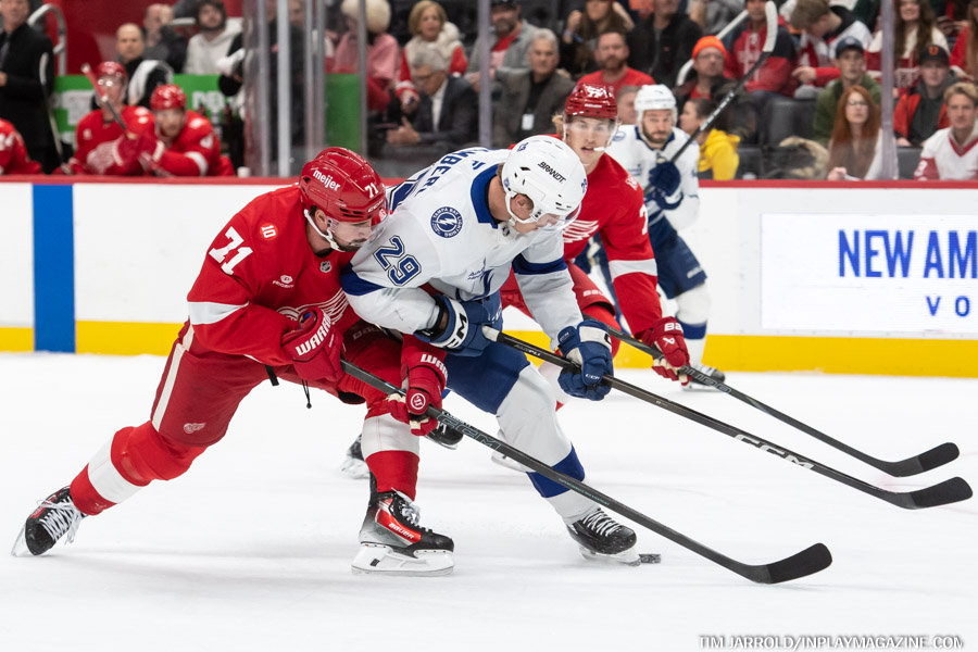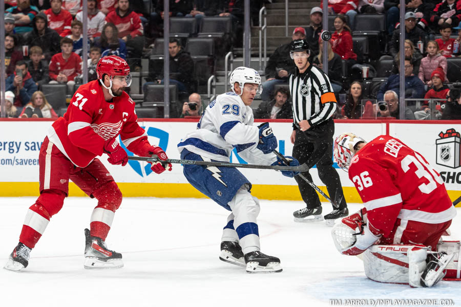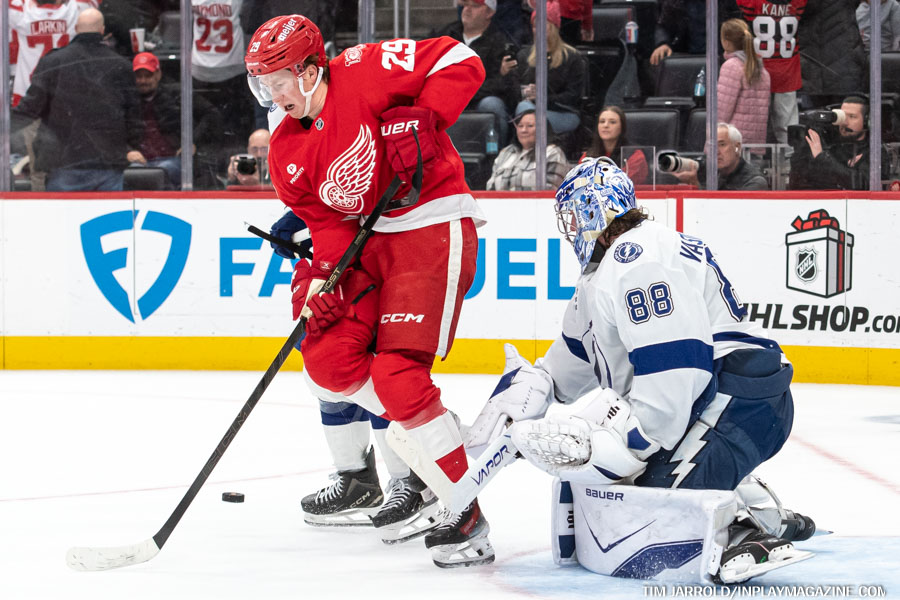 Red Wings captain Dylan Larkin brought Detroit back within striking distance before the second intermission, scoring his team-leading 14th goal of the season at 18:26. Larkin’s snap shot from the left face-off circle went between Vasilevskiy’s legs, making it 4-3 heading into the third period.