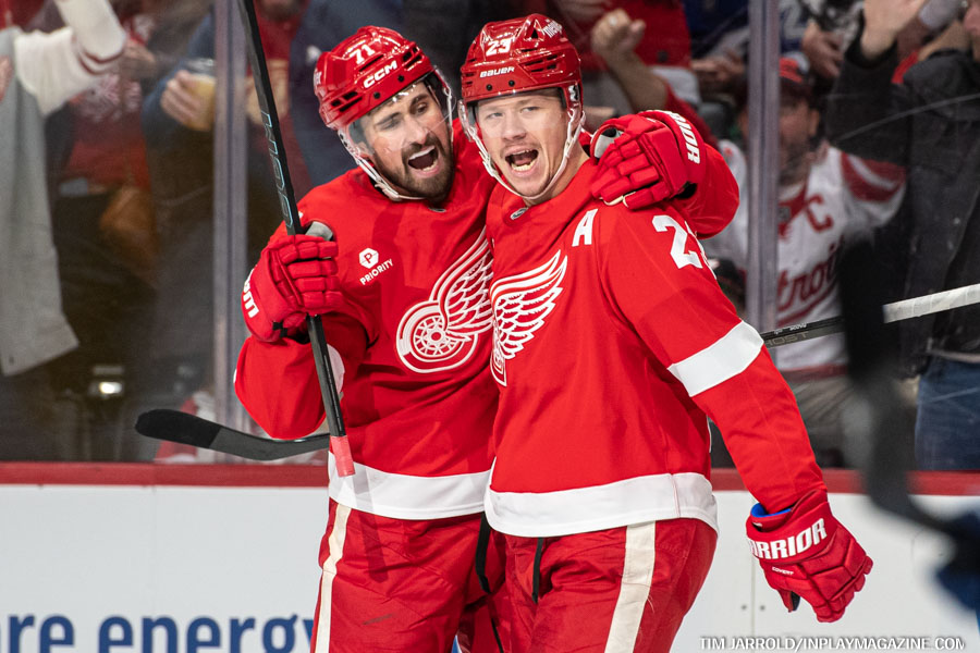 Detroit actually started strong, with J.T. Compher breaking the ice 11:29 into the first period. Compher fired a snap shot from the middle of the right face-off circle after Michael Rasmussen won a puck battle along the boards, giving the home team an early 1-0 lead.