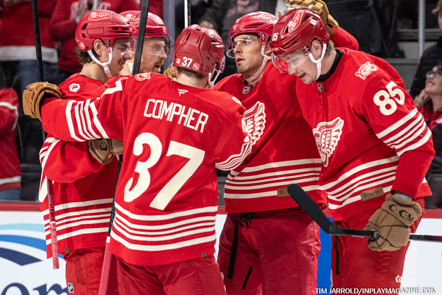 Detroit responded in the second period with two power-play goals. Alex DeBrincat, who has been on fire with eight goals in his last eight games, tied the game at 5:30. James van Riemsdyk then gave the Red Wings a 2-1 lead at 16:34, converting on a rebound after a setup from Patrick Kane.