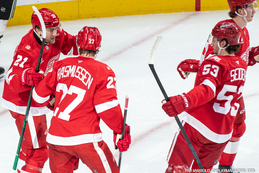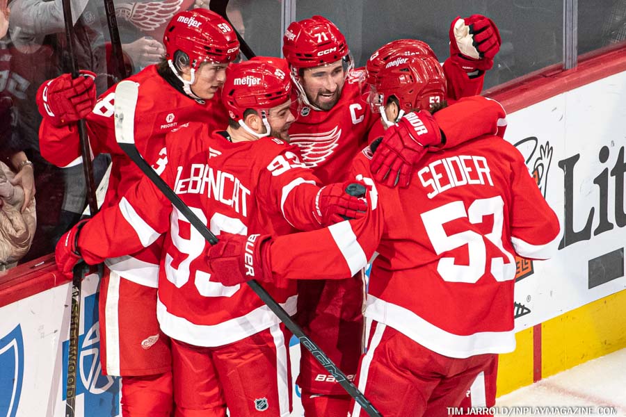 The Red Wings struck first at the 9:23 mark of the opening period when James van Riemsdyk converted a pass from Michael Rasmussen to give Detroit a 1-0 lead. Van Riemsdyk’s ninth goal of the season energized the sellout crowd of 19,515 fans.