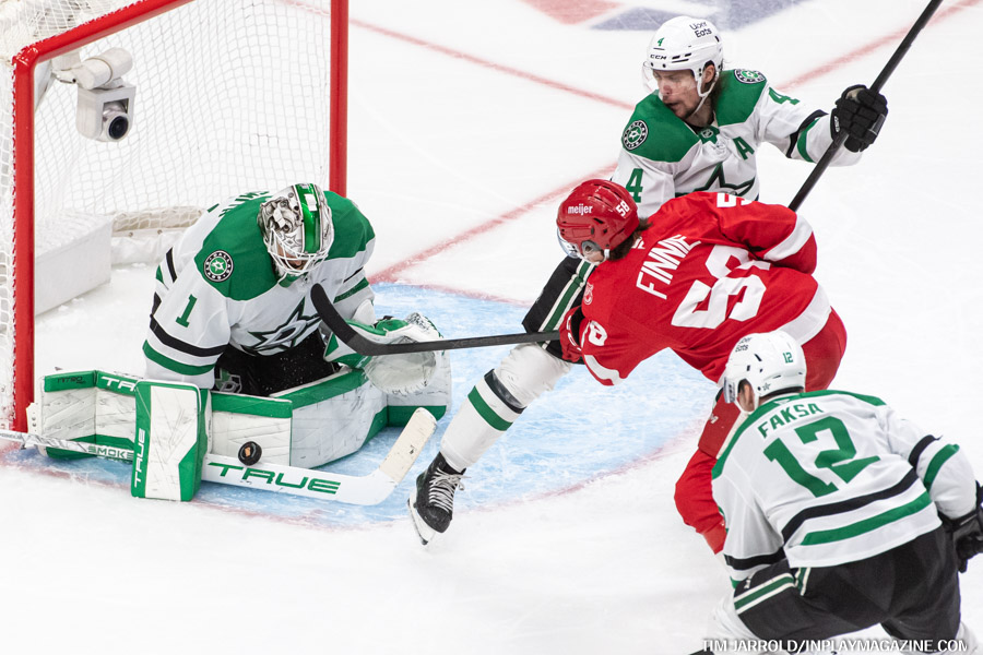 With time winding down, Larkin delivered when it mattered most. On a late power play, van Riemsdyk threaded a brilliant backwards pass through traffic to find Larkin, who beat Stars goaltender Casey DeSmith to tie the game at 3-3 with just 4:03 remaining.