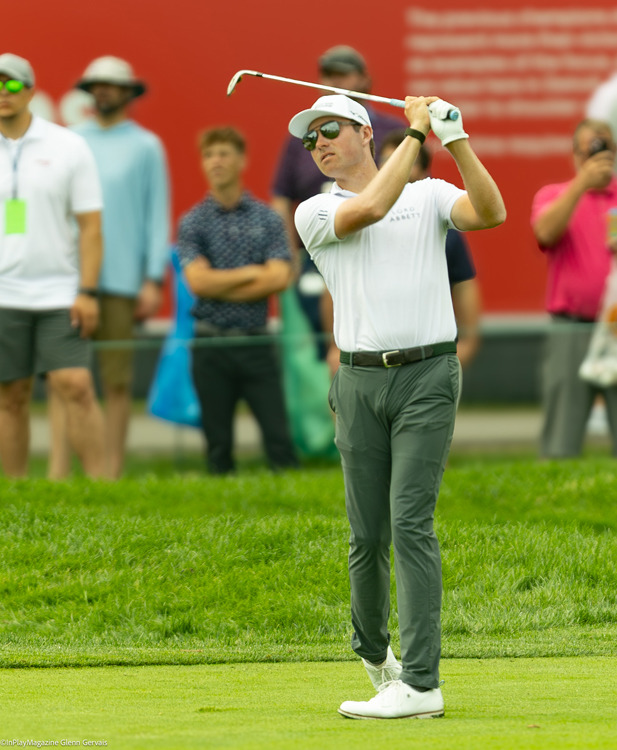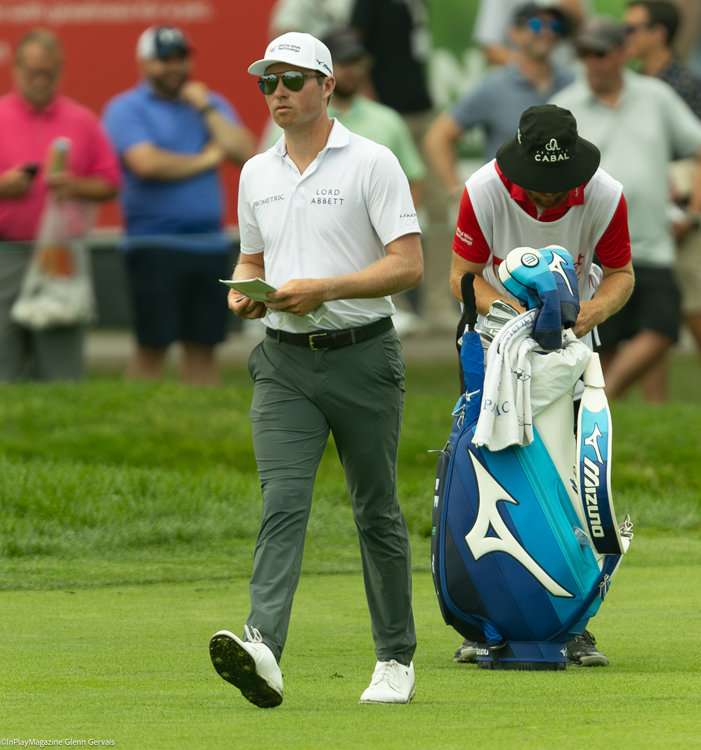 Philip Knowles produced one of the most unusual scorecards in recent memory, holing out for eagle from off the green on three of the four par-5s at Detroit Golf Club. His pitch shots from 40, 37, and 27 yards all found the bottom of the cup, and he birdied the fourth par-5 to play those holes in an incredible 7-under par. This remarkable display helped Knowles card an 8-under 64 and grab a share of the lead at 14-under, a welcome turnaround for a player who hadn’t made a cut since March.