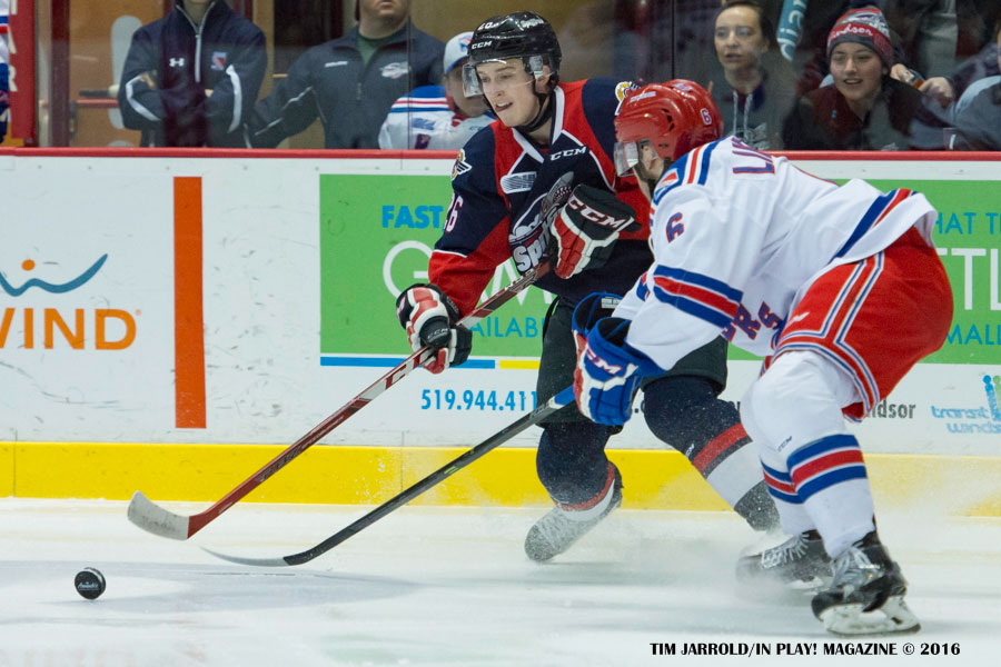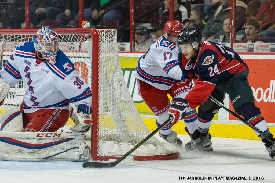 The win gave Windsor (38-21-6-1) three wins in four tries against Kitchener (43-16-5-2) in the season series. Game recap HERE. Photos by Tim Jarrold – In Play! magazine.