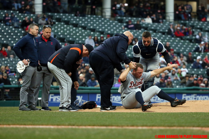 Tigers pitcher Jordan Zimmerman took a line drive in the left side of his face but was eventually able to get up and leave the game under his own power.