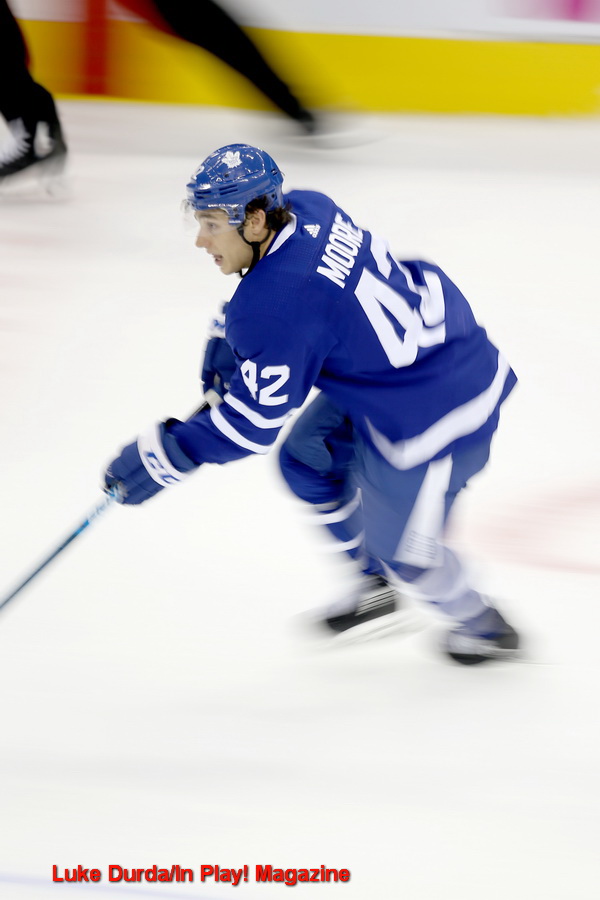 - Rasmus Sandin had the secondary assist on Moore’s second period goal. Sandin’s assist is his first career NHL point. He was the top scoring U-19 skater in the AHL last season with 28 points (6-22-28) in 44 games with the Toronto Marlies.