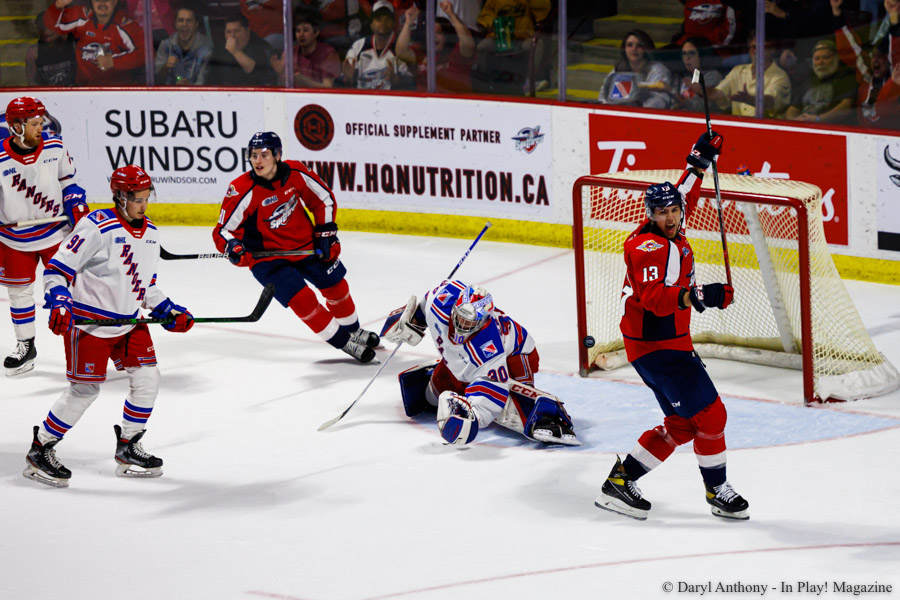 Posted on May 15, 2022May 15, 2022 by Guest Writer 15 May Home » Hockey » Windsor Spitfires » Kitchener Rangers at Windsor Spitfires May 14 2022 Gallery Kitchener Rangers at Windsor Spitfires May 14 2022 Gallery – Game 5 Windsor Spitfires Win Series 4-1. #DateAwayGFHomeGFTimeVenue1Sat, May 7KIT5WSR6FinalWFCU Centre2Sun, May 8KIT4WSR2FinalWFCU Centre3Tue, May 10WSR6KIT2FinalKitchener Memorial Auditorium4Thu, May 12WSR6KIT3FinalKitchener Memorial Auditorium5Sat, May 14KIT2WSR3FinalWFCU Centre Photos: Daryl Hermann – In Play! magazine [Show thumbnails] Windsor Spitfires Schedule Guest Writer