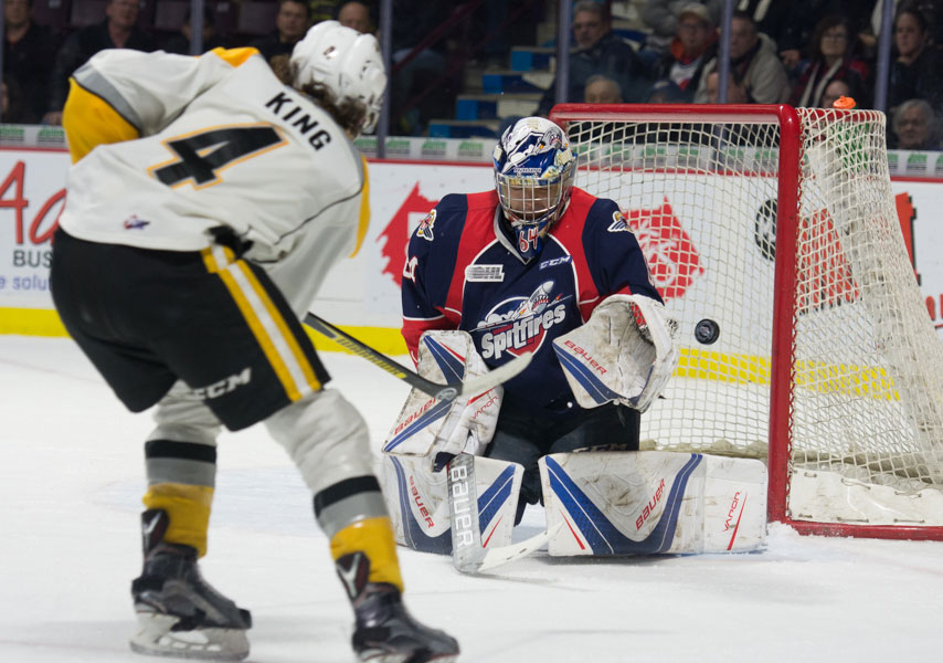 Michael DiPietro made 22 saves a the Windsor Spitfires doubled-up the Sarnia Sting 6-3 at the WFCU Centre Thursday night. Read John Humphrey’s game recap here.