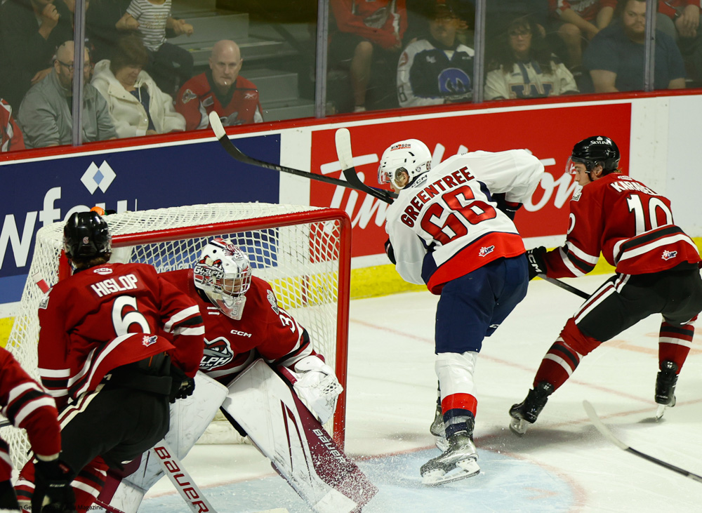 The Spitfires started the match with a bang, scoring the first goal as the Guelph powerplay expired. Greentree, seizing an opportunity, intercepted a pass from a Guelph defenseman and proceeded to score a breakaway goal. This marked his second goal of the season, providing Windsor with an 1-0 early lead.