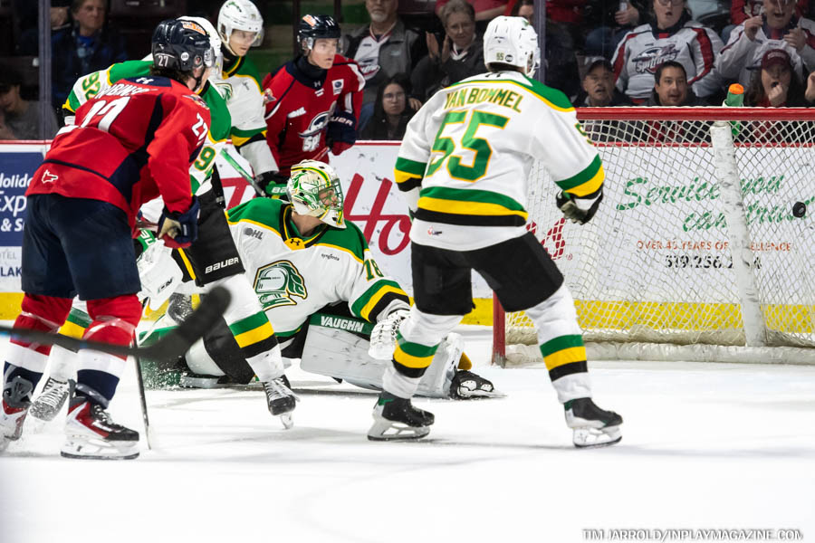 The second period belonged entirely to Windsor. The Spitfires exploded for four goals, effectively putting the game out of reach.