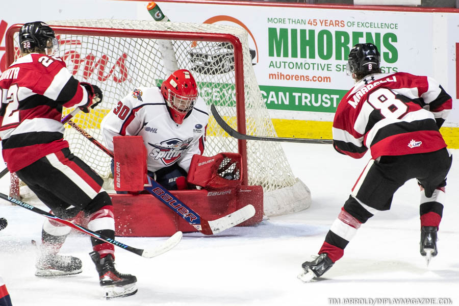 The Spitfires’ defensive corps deserves credit for limiting Ottawa to just 18 shots throughout the game, making Newlove’s job easier in securing the shutout.